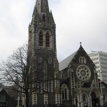 建物はゴシック建築様式で高く聳える尖塔(鐘楼)が目印です。