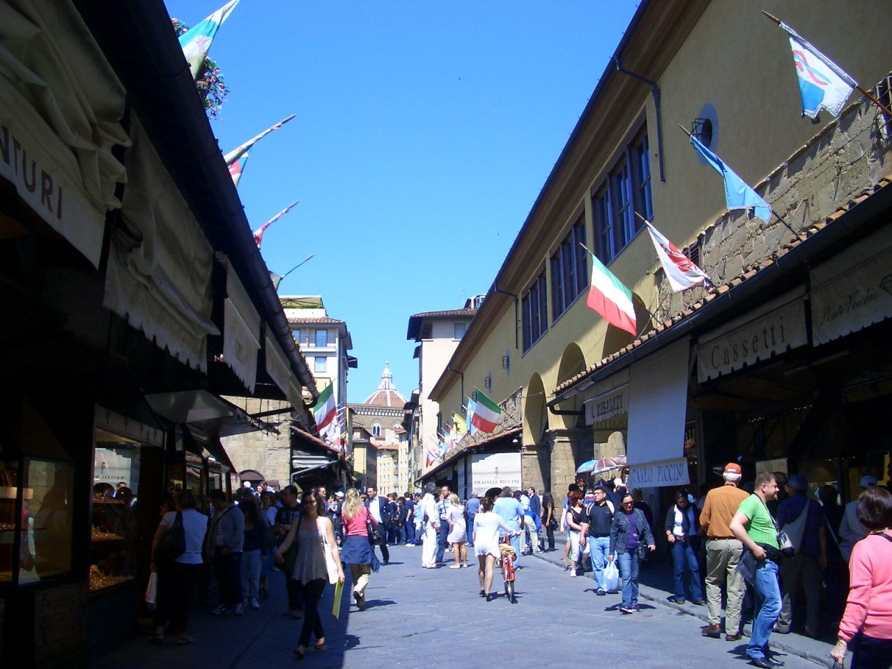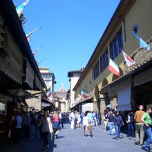 橋の両サイドには、金細工店や宝石店がところ狭しとならんでおり、いろいろな装飾品が飾られています。