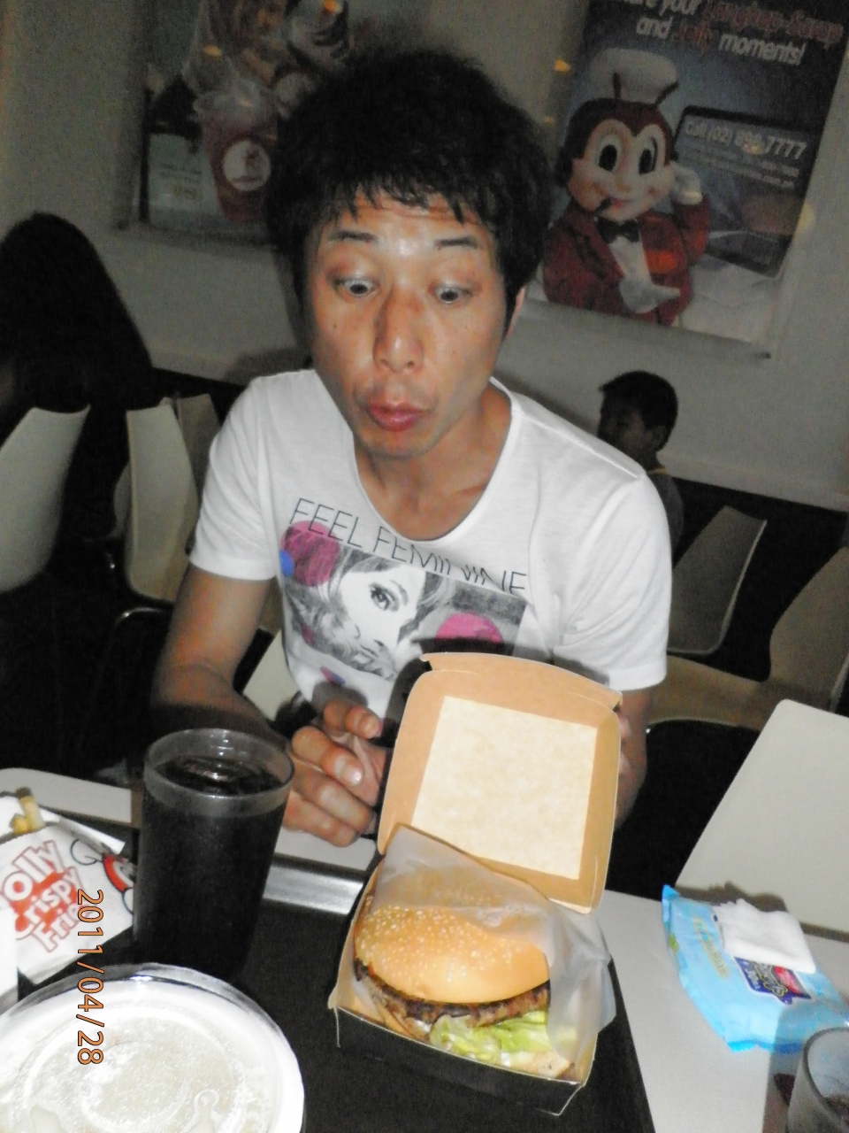 ホテルのテレビで「champ」という名の大きなハンバーガーを