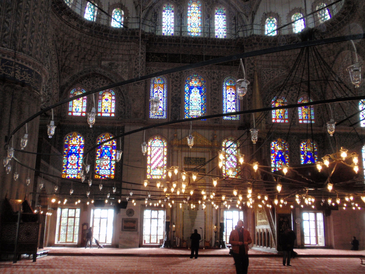 中に入ると、その大きさに驚かされ、数万枚の青い装飾タイルやステンドグラスが非常に美しく見事でした。