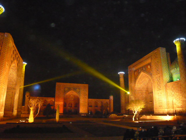 サマルカンドの観光の中心地です。この広場を囲むように、3つのメドレセが建てられてます。