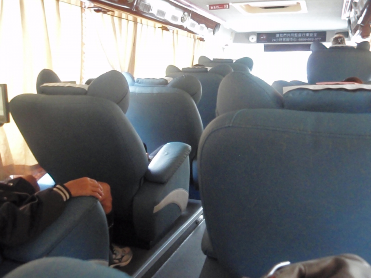 噂に聞いていた台湾の長距離バス。台湾に着いたのが夜遅かったこともあり、台中までまずいって一泊後高雄まで利用しました。台湾では都市間のメジャーな交通手段とあってかなり頻繁に便がありますが、人気の路線、バス会社によっては直前だと売り切れることもあるようです。でもって、驚きは中の椅子のゴージャスなこと。乗ったバスはまさに「社長さんのイス」。個別にTVモニターもついています。値段も安いので是非一度乗ってみてください。