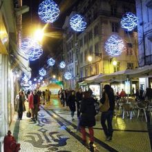 歩行者天国になっている「アウグスタ通り」は、夜遅くまで多くの人で賑わうリスボン1の繁華街です!ちょうど訪れたのがクリスマスシーズンでしたので、通りはライトアップされ、より華やかな雰囲気に包まれていました。有名ブランドのお店やファストファッションのお店が軒を連ねている他、カフェやレストランなども多く集まる通りです。