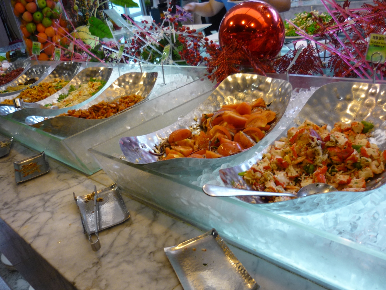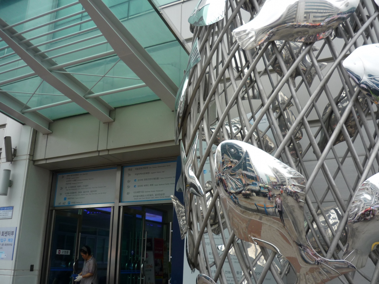 2011年12月クリスマス連休に釜山へ行きました!まず地下鉄釜山駅で1日乗り放題チケット4000ウォン購入。南浦駅へ移動、駅で日本語ボランティアガイドのおじいさんにエスカレーターのある出口を聞き、地下道をぶらぶらしながら地上へ。チャガルチ市場まで徒歩3分。市場6階にあるシーフードビュッフェ「オアセ」へ。平日ランチ@26900ウォン。海鮮だけでなくカルビチウムやパスタ、焼き鳥、麺類、お寿司、サラダ、ドリンクバーと内容充実です。盛り付けもキレイで地元の方で混んでますが、OPEN12時に行けば予約なしで座れます!以前は古い市場で、レストランは値段交渉の所が多く、正直高いなと思ってましたが、ここが出来てからは直行してます。観光客もいないのでノンビリできますヨ~もちろん他の階に値段のはっきりした韓国式レストランもあります。そちらでは石焼ビビンバなど頼みました。リーズナブルで美味しかったです!窓際に座れば眺望もGOOD!