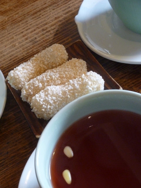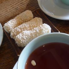 お茶を注文すると、人数分のお餅のお菓子がついてきます。