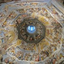 階段をどんどん上って行くと、大聖堂の天井近くにたどり着きました。天井画がすばらしく立ち止まってしまいます。が、ここにある通路は人がすれ違うだけでも大変な狭さです。