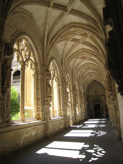 中へ入ると右手に教会がありました。内部は広く彫刻もすばらしかったです。左手には修道院の回廊がありました。回廊は2階へも行くことができました。アーチの影も見事でした。