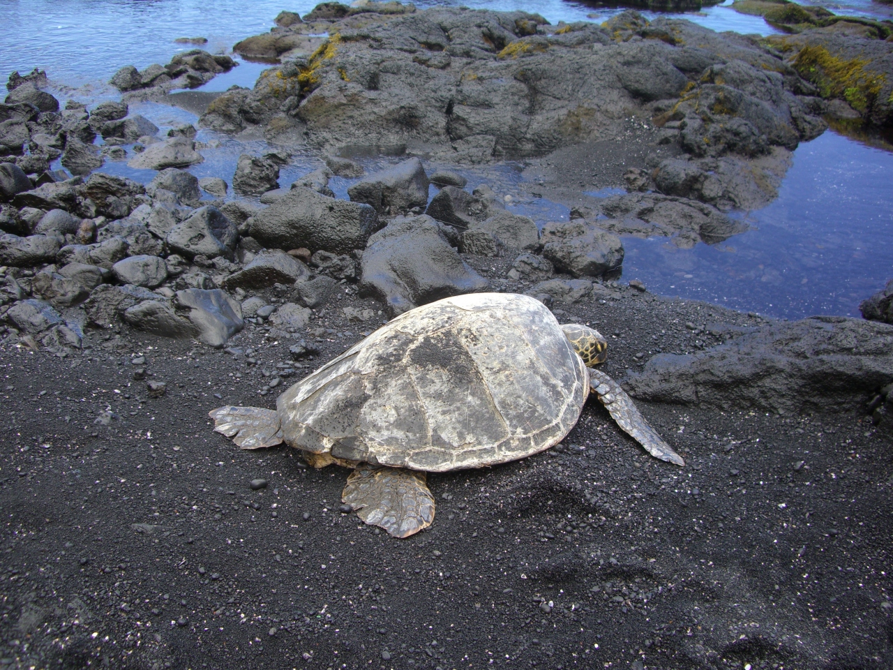 コチラにはハワイの守り神として知られるウミガメが日向ぼっこしにくるとこで有名。