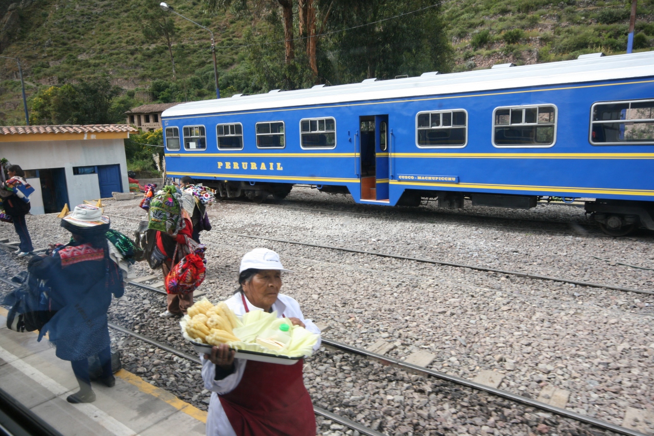 クスコのサン・ペドロ駅を6:50に出発し、列車に乗ること4時間、マチュピチュ駅に10:51に到着。一番安いバックパッカーを利用しました。様々な国籍のトラベラーとゆったり変わり行く景色を堪能し、クスコでしんどかった高山病が順応して落ち着いてくるよい時間でした(マチュピチュの方が、クスコより高度が低いため、体は随分楽になりました)。4時間はそんなに長く感じませんでした。車内販売のワゴンが来たり、大きな駅に着くと、外には売り子さんがお土産を売り歩いていたりしていました(窓から買えるようです)。