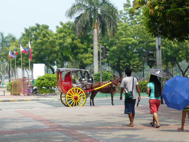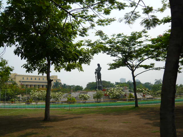 駅から歩くと、まずはレモンイエローの観光局の建物に辿り着き、その前方にリサール像があります。公園の中心部へ行くと、広い池があり、池の周りは緑に溢れ、英雄のモニュメントも並べられてました。