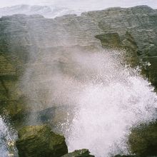 荒波がぶつかると海水を垂直に噴き上げたようになります。