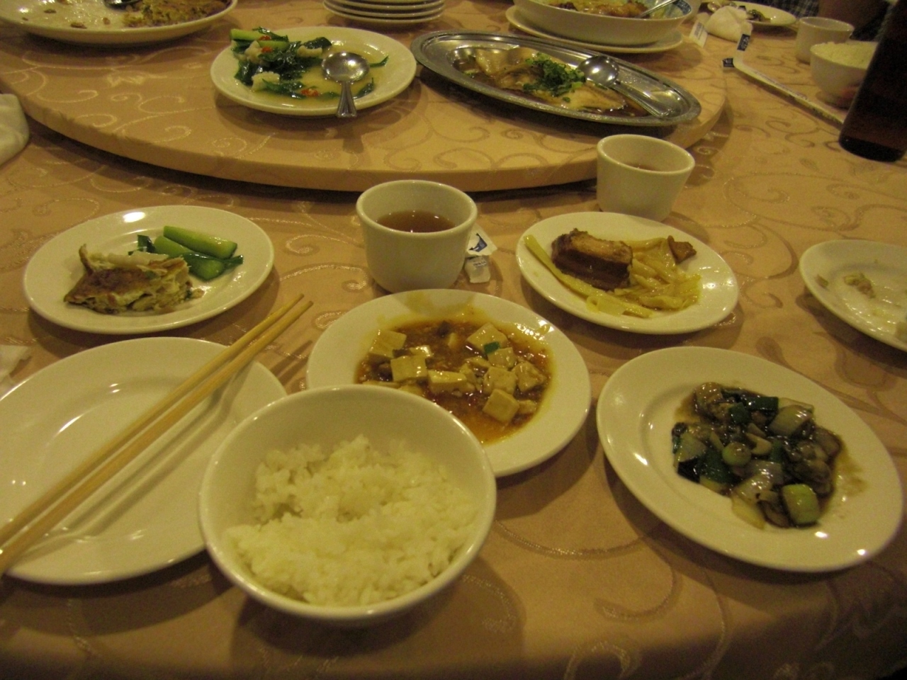 ツアー旅行の昼食として訪れました。いかにも団体向けのフロアーにたくさんの8人掛けの丸テーブルがあり、順番に席に着きました。揚げ物、炒め物、魚料理、肉料理、スープ等、一通り大皿で次々と運ばれてきて、順番にテーブルを回しながら各人皿に取りました。味は中華料理ベースですので日本人も食べやすいです。飲み物(アルコール)、デザートは別途注文となり、別会計でした。他のテーブルで、何名かデザートを頼んだのに運ばれこず、食事時間が終わり、店を出ないいけないことがあったため、フロアーの対応の正確さはちょっと不明です。