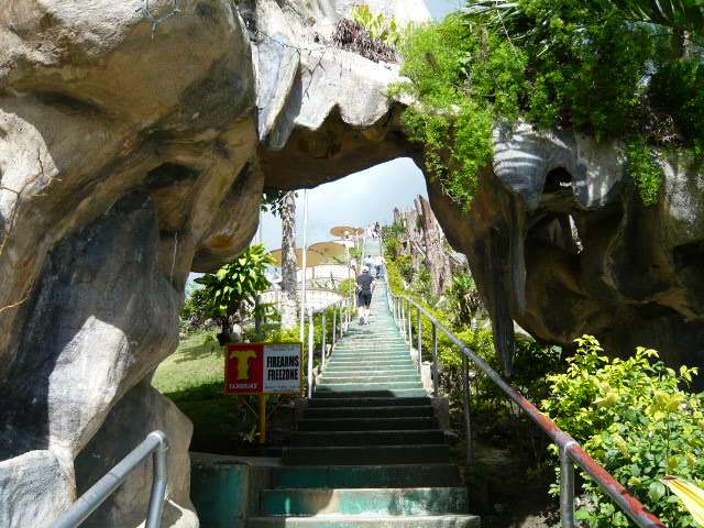 田園風景の中を車は走り、ちょっと山を登ったかと思ったら、すぐに到着。展望台へ続く急な階段を登り、下を見下ろしてみたら、驚きました。木が生い茂る森の中に、ボコボコと可愛い山が数え切れないほど。チョコレートヒルズという名のとおり、薄茶色の山でした。さっきまで、あの近くを通ってきたなんて、全く想像しなかったです。井の中の蛙と言うか、上から見てみないを分からないものだなあ、と実感。