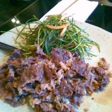 手打ちの冷めたいきしめんのような面がとっても美味しく、ブルコギも美味しく、ボッサムも美味しく、オリジナルのお味噌がなんとも美味しく(*^^*) 帰りにお味噌を瓶で買ってきました。かなりの大きさなのに700円くらい。お勧めですこれは!