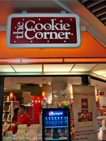 アラモアナ・ショッピングセンター1階のセンターステージすぐ近くにあります。昔ながらのクッキー屋さんっていう感じです。大きなクッキーやブラウニーなどのバラ売りから箱に入ったプレゼント用もあります。小腹が減った時にちょっと食べれるのがいいかも。