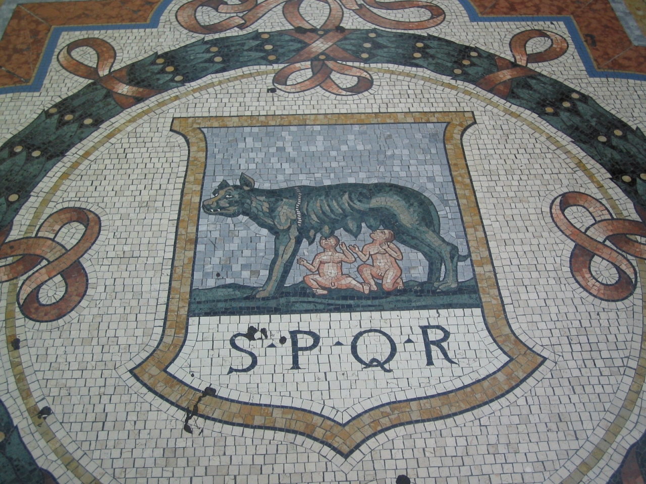 ドォオーモからブレラ美術館に行くのに通った。これが世界で最初の屋根付商店街でパリのパサージュはこれを真似たのかと考えましたが私の推測で本当かどうか知りません。見事な造形と装飾はミラノにふさわしいと思いながら歩いていると床にSPQRとあるのを見つけました。これはラテン語 Senatus Populusque Romanusの略。元老院とローマ市民の意味でローマ帝国の象徴であった。