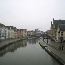 レイエ川に平行する西側の美しい通りがコーンレンレイです。穀物河岸とよも呼ばれています。かつては港として機能していて、肉市場や魚市場も近くにあったそうです。私たちはコーンレンレイ側を歩き、グラスレイともにギルドハウスの眺めを楽しみました。