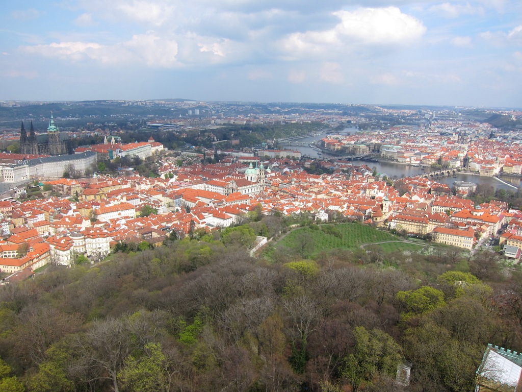 プラハ城から見えて気になったので登ってきました。トラムと同じ切符で乗れるケーブルカーでアクセスも簡単で夜までオープンしています。ここはおそらくプラハの旧市街を間近に見下ろす場所としては最高のロケーションでしょう。位置的に街の西側にあり、午前中は逆光になるので、プラハ市街のオレンジ色の屋根の輝くのは日が西に傾く午後から夕方が良いと思います。