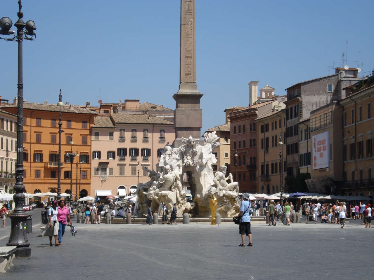 細長い広場でローマ時代ドミティアヌス帝が競技場だったと知り納得しました。オベリスクもその時代に造られた後に移されたり壊れたりしたのを復元してここにあり、回りの建物も当時の物を利用している部分があるそうです。噴水が有名ですがこれもローマ時代の水道が使われているのでしょう。彫刻はどこでも置けますが水が無くては噴水は作れません。場所と水のインフラとオベリスクがあったから現在の姿がある。ここもローマ帝国の遺産と言えるでしょう。