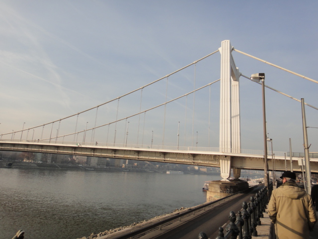 ドナウ川の、ブダ側ゲッレールトの丘のふもととペスト側に架かる橋です。現在もハンガリーで大変人気のあるエレジェーベト王妃の名前が付けられています。戦争で破壊され、元の姿とは異なる形で再建されましたが、こまめに塗り替えられ白く美しい姿を保っています。