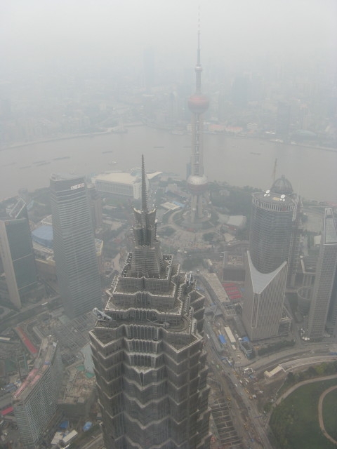 世界一高いビルであるドバイのブルジュ・カリファよりも、もちろん、東京スカイツリーよりも、展望フロアがある位置でいえばずっと高い、地上470メートルからの眺めは圧巻です。天気が良ければ、長江も見えます。