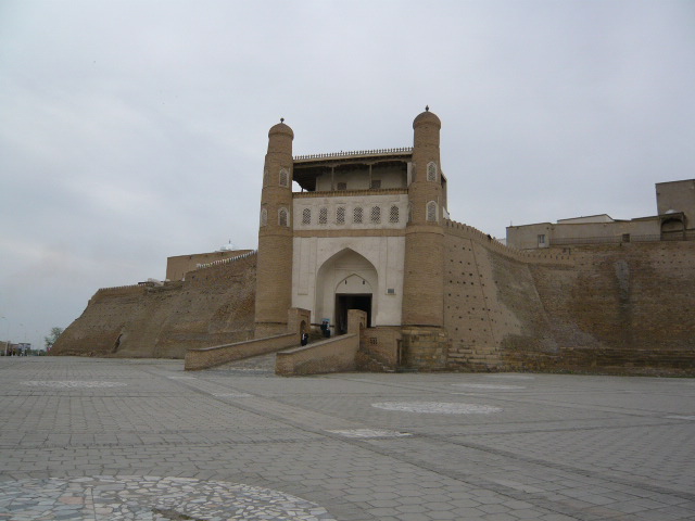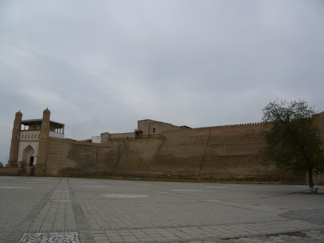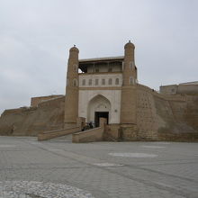 カラーンモスクを西へ進むと、右側に高い城壁が見えてきます。とても巨大なアルク城の入口は城壁を進みきった西側、展望台のような門で、階段を上っていくと右側が入場券売り場です。こちらの入場券は3日間有効のようで、夕方に訪れたら、博物館はもう閉まったので明日もまた来て、と言われてしまいました。