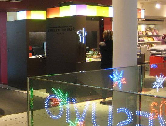 ギャラリー・ラファイエット百貨店本館のルイ・ヴィトン等のショップが並ぶフロア(確か2階)にあったピエール・エルメですが、インテリア館の0階(日本式でいう1階)のエスカレーター近くにもお店が入っていました。隣にはメゾン・ドゥ・ショコラがありました。
