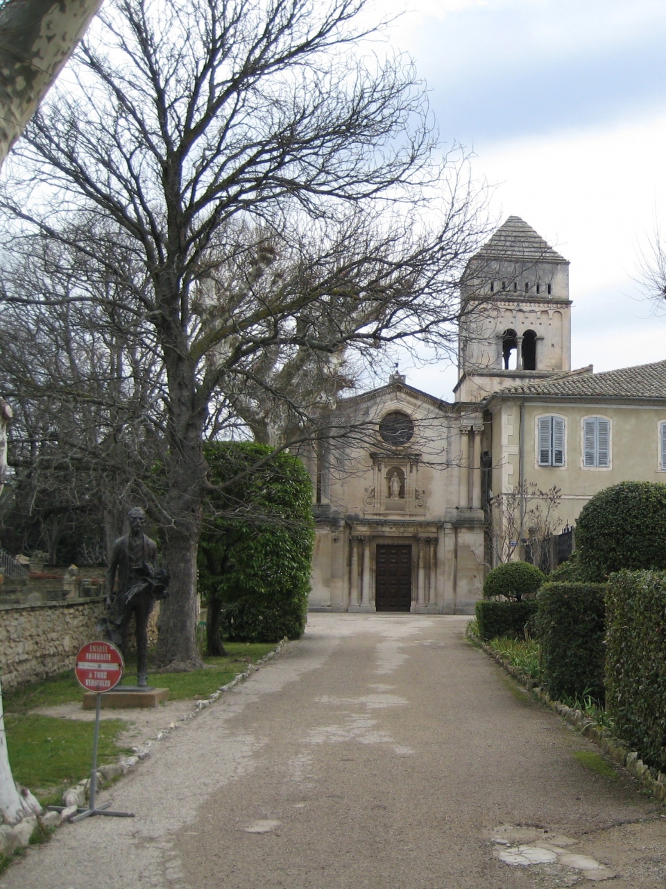 サン・ポール・ド・モーゾール修道院は、併設の精神病院がありゴッホが1989年5月3日から一年間ほど入院していました。現在も精神病院として利用されているそうですがその一部が観光客に開放されています。修道院は12世紀に建てられたロマネスク様式で、手入れの行き届いた中庭とアーチを持つ回廊があり、2階に上がるとゴッホが入院して病室が再現されています。病室から窓をのぞくと鉄格子がはめられ、その先には畑があり、ゴッホが描いた絵ともほとんど変わりはありませんでした。入院中体調が良ければ修道院の周囲の散歩も許可されたくさんの絵を残していますが、現在もオリーブ畑やアルピーユ山脈の風景などは当時とほとんど変わっていないそうです。