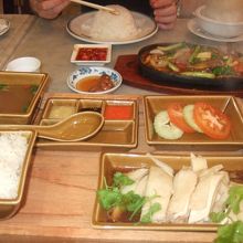 あまりチキンライスに詳しくはないですが、上品な味でとても美味しかったです!鶏肉も肉が柔らかく、皮の部分もぷりぷりしてるけど脂っぽくありませんでした。ソースは小皿に3種類あって、しょうゆっぽいのと、ジンジャーとスイートチリのようなものでしたが、どれと合わせても美味しかったです。