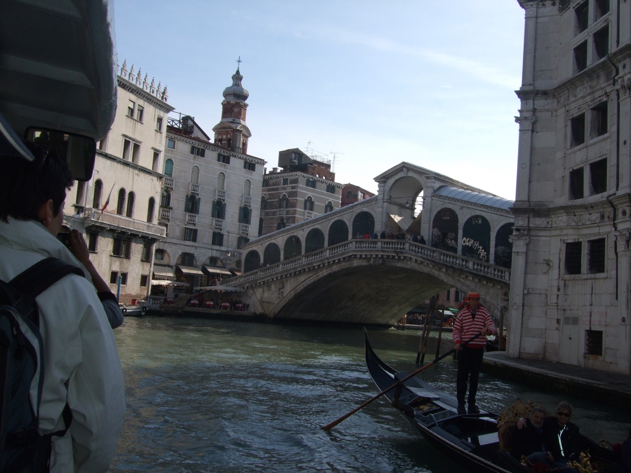 リアルト橋の中にはいろいろなお店がはいっていて、お土産なども買うことができます。ここはベネチア観光の中心部です。またリアルト橋の周りにはレストランもいくつかあり、ここで夕食にスパゲッティを食べた事がありますが、ときどき観光用のゴンドラが通り、オペラ歌手がサンタルチアなんかを歌っているのでとても雰囲気があり、スパゲッティもおいしかったです。