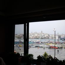 対岸に新市街を見渡せるレストラン