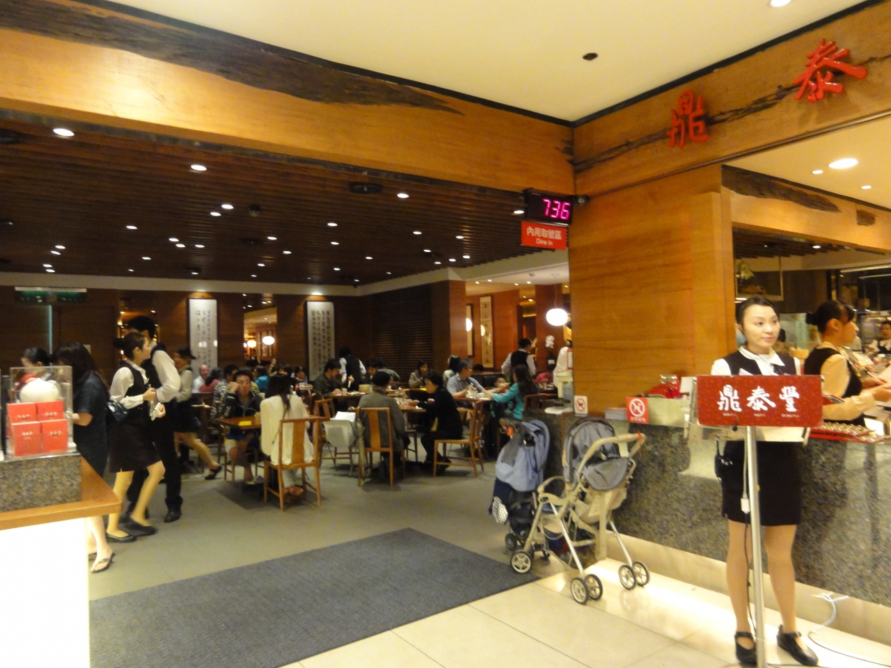 本店は道路にも人が溢れていて、待つ気も失せ近くで小龍包を食べました。夜、SOGOのスーパー他で買い物をしてお店の前を通りました。SOGOフードコートの支店です。お持ち帰りを待ってる人は居ましたが、お店に入る待ち人は偶然か居ませんでした。受付嬢が居る位ですから、ここも並ぶのでしょうね。でも次回はここに直行してみます。