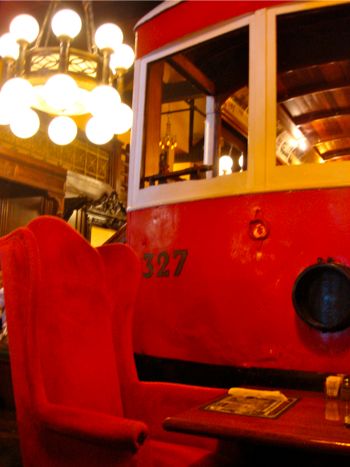 ワードセンターの2階にあります。外観はドアが大きくとってもレトロな感じです。店内は思っていたよりもびっくりするほど広かったです。驚いたのがお店の中に電車があること。その電車の中にもテーブルがありました。