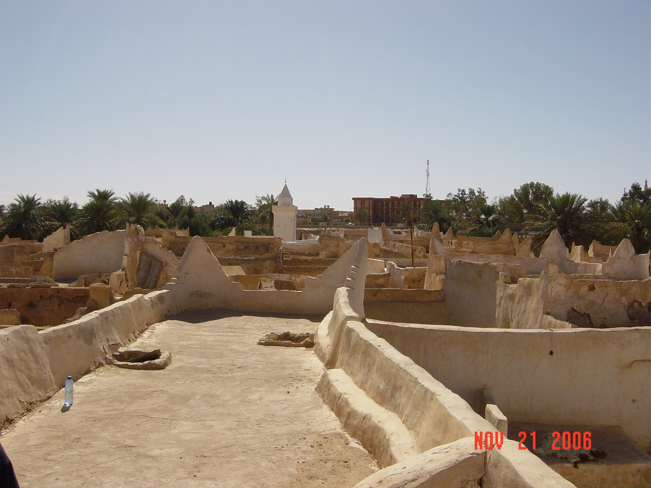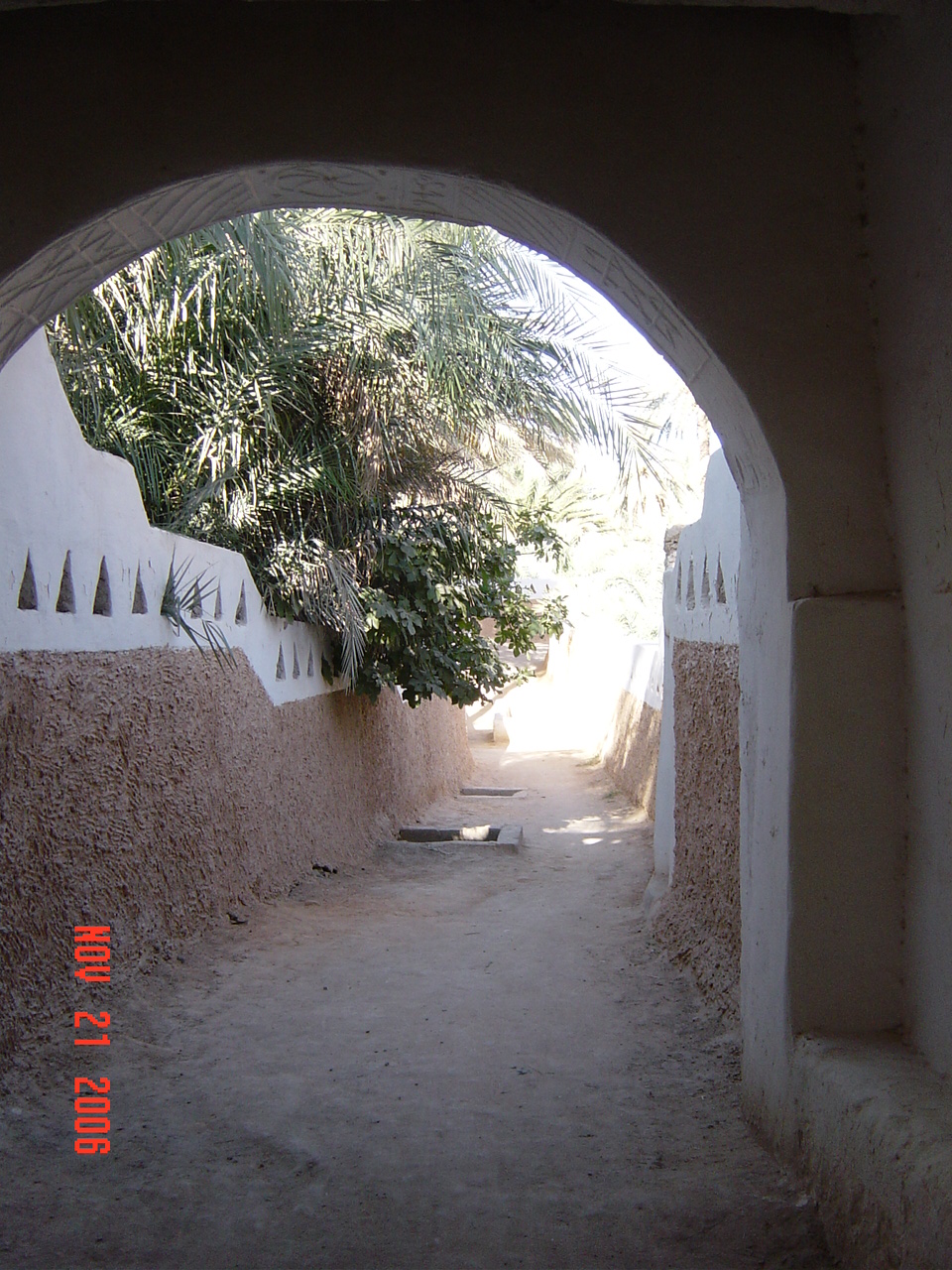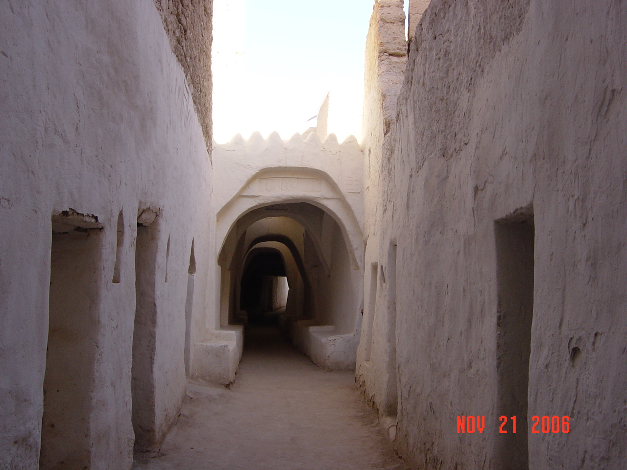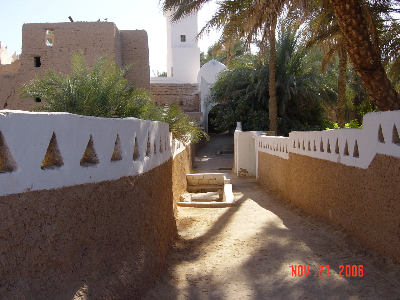 旧市街内部は洞窟のように暗く、また入りくんでいるので、案内がなければどこを歩いているのか見当もつきません。そのせいもあり、昼でも涼しい。真っ白な壁も印象的で、付近は緑に囲われていることから、まさに砂漠の中のオアシスといった感じがあり、この中にある住居で食事もとり貴重な体験をしました。