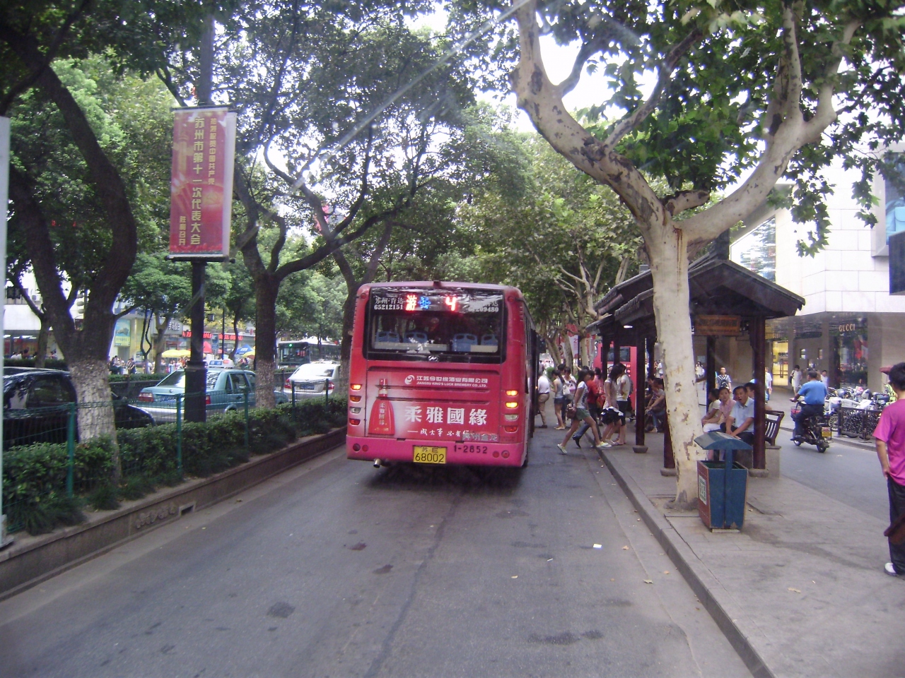 中国のバス全般に言えますが、バス停に停留所は載っていても、●●路と書いてあるだけで、●●路のどこに止まるか全くわかりません。