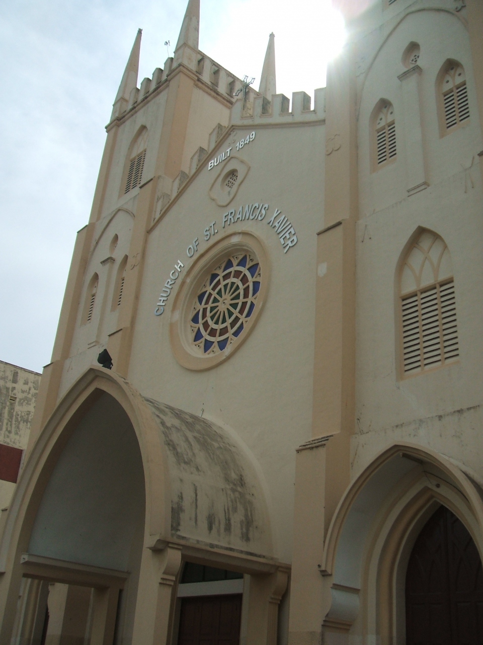 ここはアジアの布教に努めたフランシスコザビエルを記念して建てられたカトリックの教会である。教会の前にあったのは鹿児島県から送られたザビエルと鹿児島のやじろうという人との出会いであろうこの出会いがきっかけで日本に来たザビエルをしのべる教会。