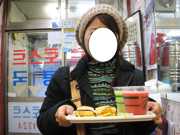 トーストは日本でも食べられる。いくら韓国でトーストの屋台が沢山あっても、韓国へ行ってまでトーストは・・・と今まで一度も試したことが無かったのですが、評判が良いので朝食として食べに行きました。お店がとてもわかりにくいので、迷って迷って、ようやく辿りついたので、うまく説明できないのが申し訳ないです。でも迷ってもどうにか探してでも行ってもらいたい店です。あつあつのトーストを一生懸命作ってくれるオジサンとオバサンはとても親切です。日本語が分からないのですが、人の良さそうなオーラが出ています(笑)。一緒に頼んだイチゴジュースも最高でした。