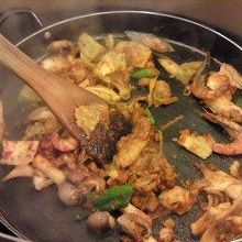 目の前の大きな鍋で鳥や魚介を豪快に炒めるパフォマーンスは目にもおいしいです。