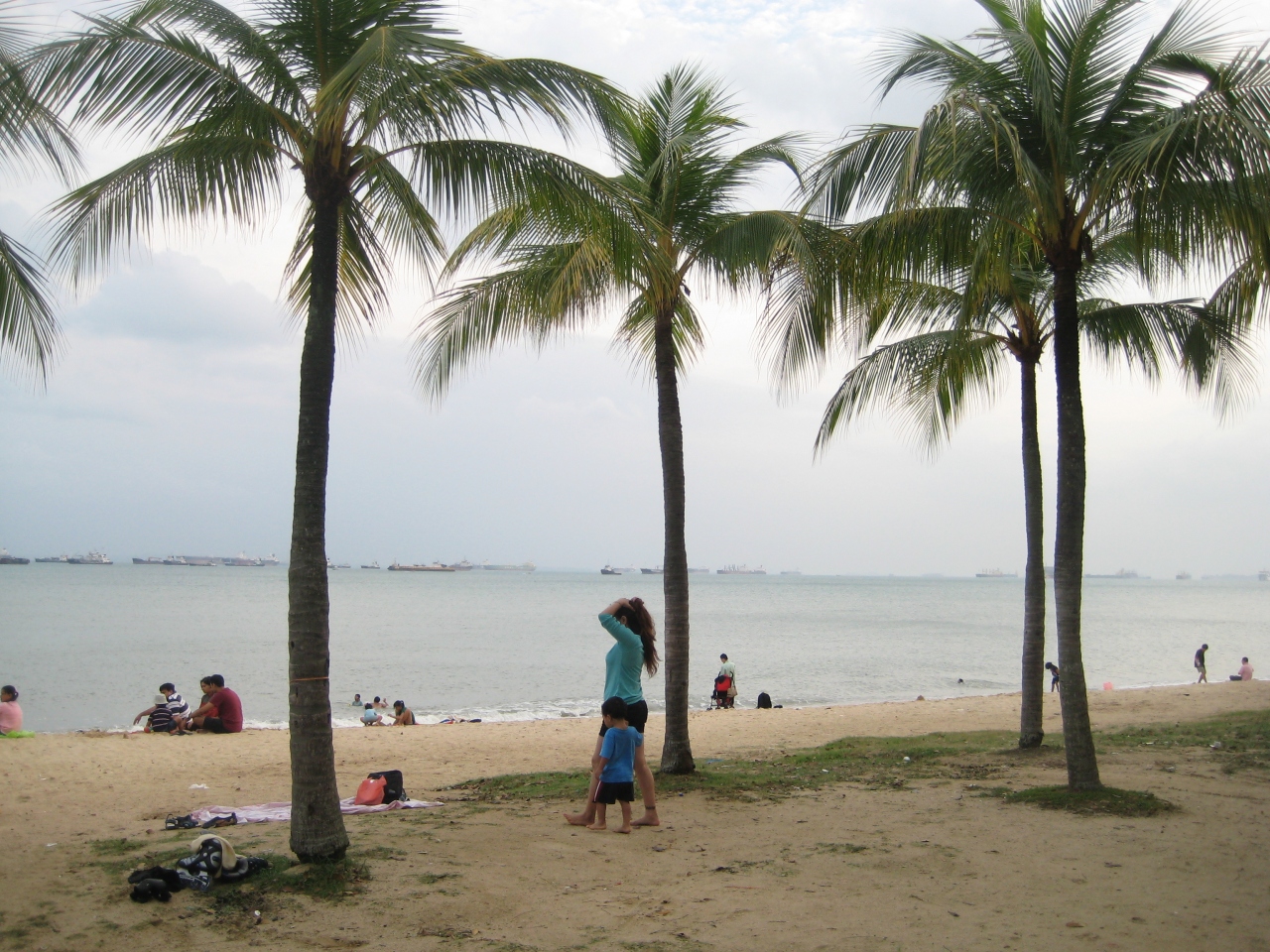 シンガポールの中心とチャンギ国際空港の丁度中間地点辺りにあるリゾート地区です。シンガポール海峡を目の前にした砂浜が広がり、海岸に沿って緑の林が連なっていました。砂浜では、1月だというのに水着姿の家族連れがテントを広げて休日を楽しんでいます。マクドナルドやお洒落なシーフードレストランなどが並び、自転車が浜辺のコースをはしる様子はまるで、アメリカ西海岸か湘南、江ノ島界隈の雰囲気そのままでした。