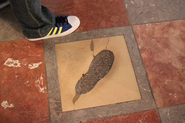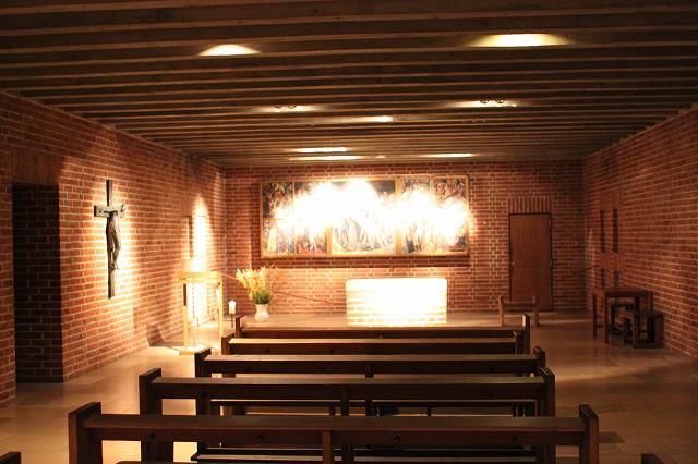ですので、入り口の足跡から教会内を見ると窓が1つも見えない