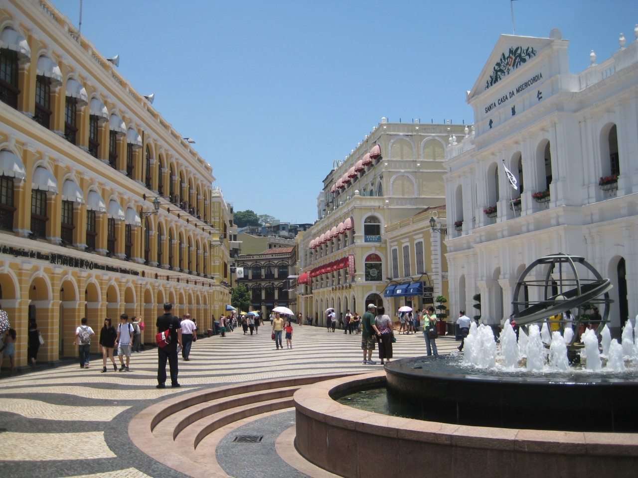 ポルトガルへ行ったことはありませんが、初めて訪れたセナド広場はイメージの中のポルトガルと完全に一致しました。思ったほど広くはありませんでしたが、ガイドブックに紹介されていた有名な義順鮮○(○は女に乃)公司の牛乳プリンを食し、壁に掲示されていた、硬めのパンに豚肉を焼いて挟んだ、ハンバーグ様のものを食べて、すっかり南欧風に寛ぐことができたセナド広場でした。