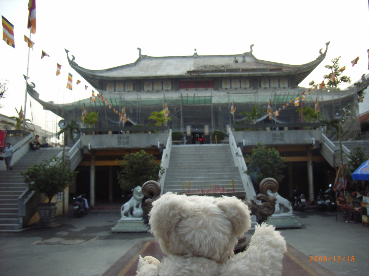 ホーチミンで最大の寺院ということで、バイクタクシーのお兄ちゃんにお願いして行ってみました。建立は比較的新しく1971年、日本に留学していた僧によって建てられたそうです。寺院内で子供たちがお線香を売りに来ました。