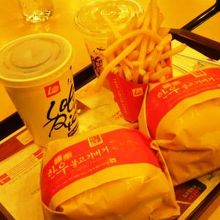 金浦空港を利用した際、ロッテリアを見つけたので、人気の韓牛100%「プルコギバーガー」を食べてみました!同じロッテリアでも、日本のとはメニュー構成が全く違うので、カウンターに行く前にじっくり検討する必要があります。なんとかオーダーし、出てきたバーガーは、日本のバーガーの1.5倍はある大きさで、まずはその大きさにびっくり!かなり朝からボリューミーな食事になりましたが、評判通りジューシーでパテの美味しさが十分感じられ、大満足な食事になりました!