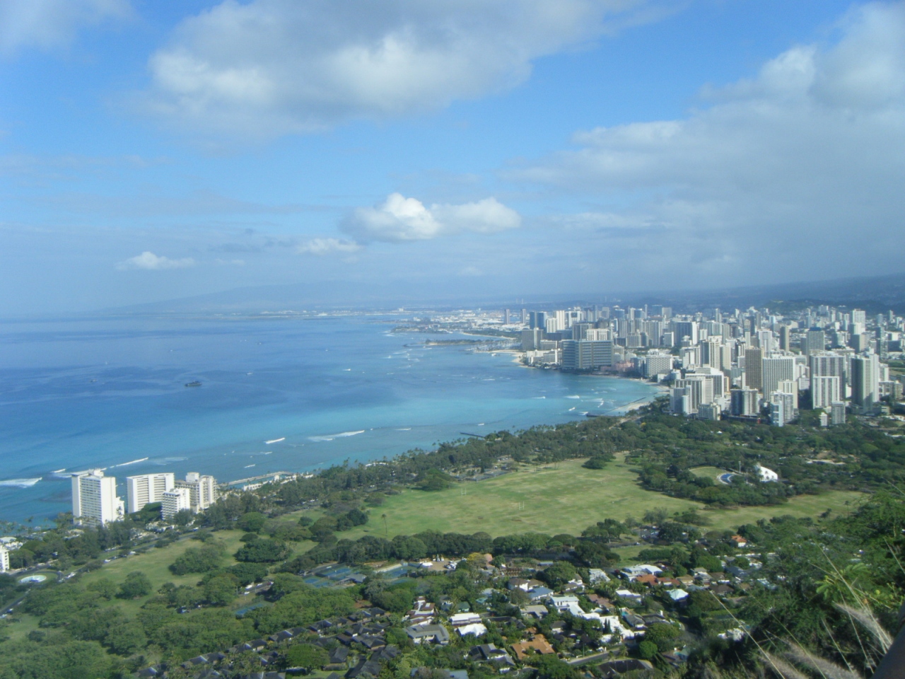 山頂近くなると少し急な階段があります。そちらを登っていくと2ドルで登山証明がもらえます。そして岩をくぐって山頂へ。 なのですが、その急な階段の反対側にゆるやかな道もありますので、ゆっくり行きたい方はそちらへどうぞ(^ー^)b