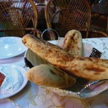ディナーのレストランを吟味しながら歩いていて、偶然見つけたレストランです。レストランのおじさんから声をかけられ、「日本人にはサービスしますよ!全ての合計金額から20%引きでどう?」、との勧誘に負け、入ってみることに。1階にも部屋はあるのですが、2階のテラスで心地よい風を受けながら食事をいただきました。このレストランは、ギョレメの中心から少しはずれた場所にあるので、観光客の足が伸びにくいのかもしれません。座ると、焼き立てのパンとディップのサービスがあります。このパンが、インドのナンとか、イタリアのフォカッチャのような味わいで、モチモチしていて、本当においしい!添えられたディップ2種がこれまた最高で、トマトソースのディップはぴりっとした辛口、ヨーグルトのディップはやさしい味。そしてお会計のとき、やっぱりまんまとそのままの価格で請求が来たので、「オーナーのおじさんに20%引きっていわれたよ!確認してね!」ってやんわり抗議すると、ちゃんと20%引きになりました。