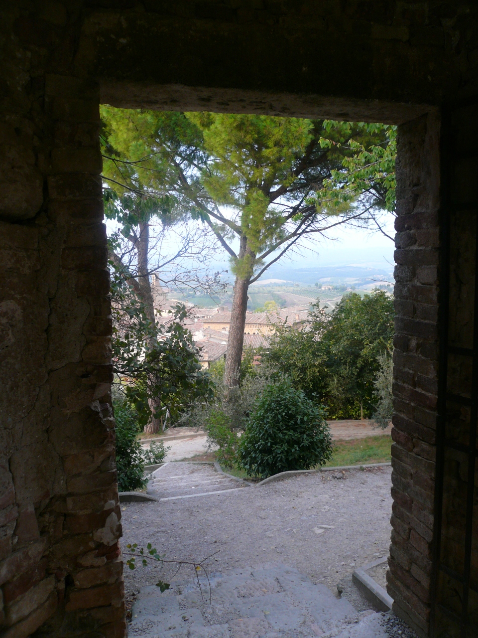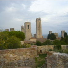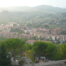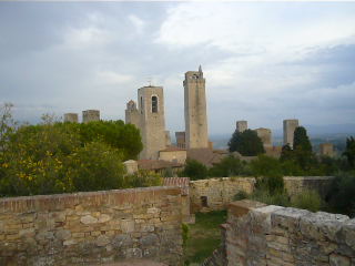 ミラノから友人の車で一日がかり、途中フィレンツェに寄って、ここまでやってきましたが、その価値がありました。中世に逆戻りしたような感じになる街並みで、教会の鐘を聞きながらメインの路地を上ったところに庭園がありその小さな城壁の上にあがると絶景が見渡せます。写真にもありますが、イタリア中部の丘陵地帯がサンセットで夕焼けに染まり、この上ないパノラマを満喫できます。フィレツェで買いそびれた革のバッグも、ここならもっと手ごろな価格で買えました。