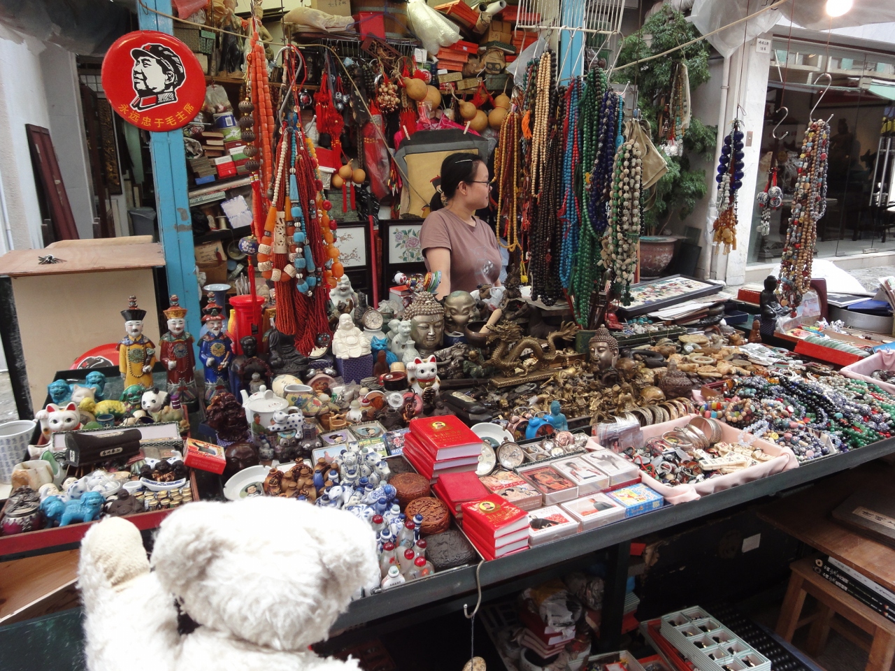 香港の路地裏、レトロな雑貨・ガラクタの類を売る露店が並んでいました。いまや、中国本土でもあまり見かけない類の商店街かもしれません。近くまで行ったら、覗いて見るのも一興かも。