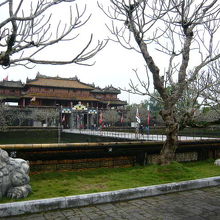 王宮の門をくぐると真正面に見えてくるのが大和殿です。大和殿の前には池があり、池には真っ赤な鯉が泳ぎ、池の周りには可愛いカエルの置物がありました。