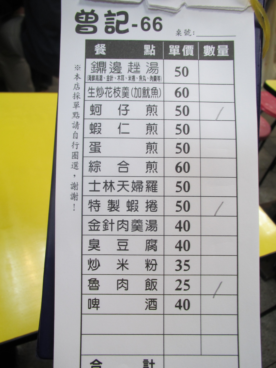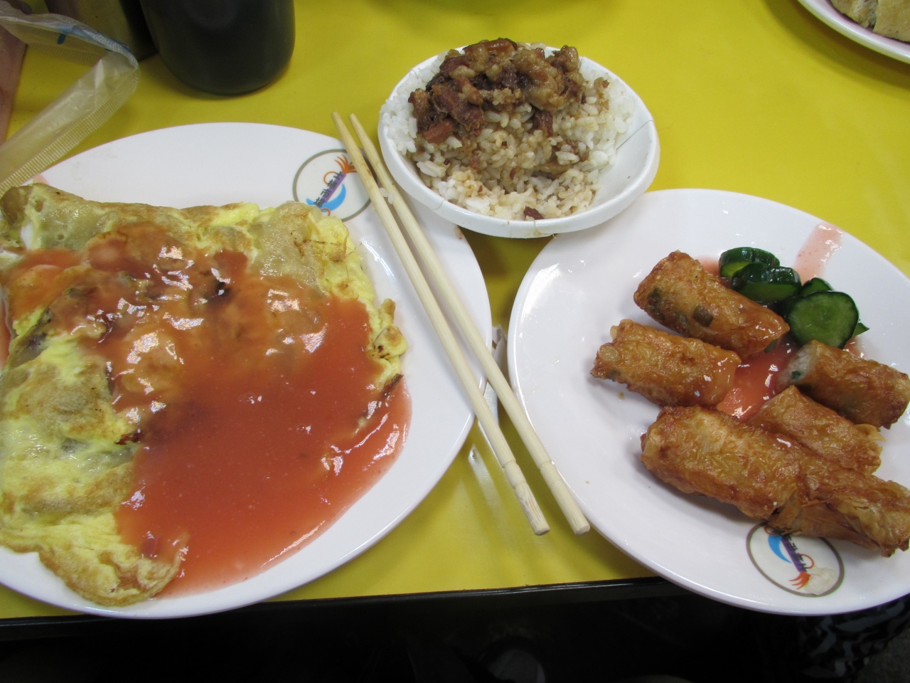 お店はどれも美味しそうで迷いますが、中欧部に大きなテーブル席を用意している曽記さんと士林好記さんで、魯肉飯やカキのオムレツなどを食べました。