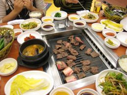 プサンで焼き肉を食べるときはいつもここに行きます。国際市場のはずれです。私は昌善洞二街の薬局の右にある道をまっすぐ山の方へ歩き6つ目角に店はあります。看板が出ているので分かります。この辺りは焼き肉屋さんが固まっています。ここはメニューがちゃんとあるので安心で、お店の人も日本人になれていますので注文は日本語でも大丈夫です。